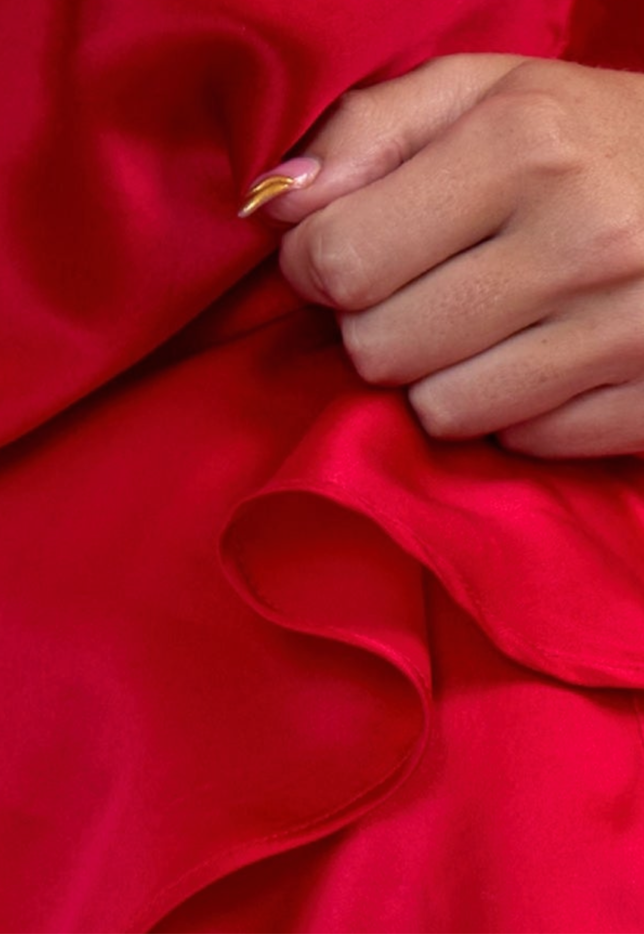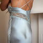 Crafted from 100% pure silk, its liquid drape caresses the body like a second skin. Delicate lace tracing the waistline teases with subtle transparency, revealing just enough to ignite the imagination. Adjustable spaghetti straps cross elegantly across the back, creating a barely-there feel and an unforgettable silhouette. Whether you're lounging in moonlight or making mornings a moment, this nighty is your answer to luxurious sensuality.
